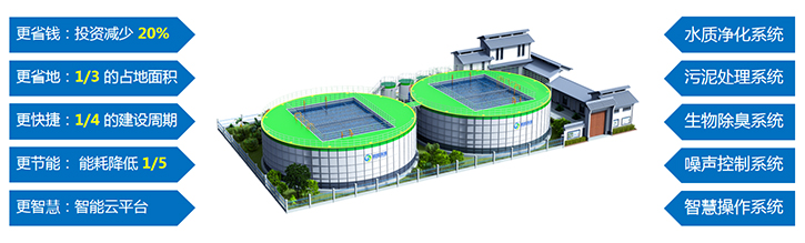 鵬凱圓-低碳高效裝配式污水廠,秉承“工程設備化、設備標準化、運維智能化”三化理念,開創工廠化預制污水處理系統的新模式。其占地更小、投資更省、建設周期更短、運行更加智能等綜合優勢引領污水處理產業發展。