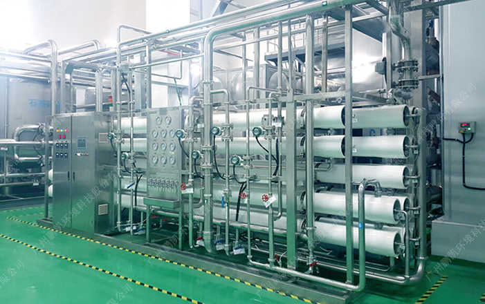 系統用于廣州、天津工廠,以RO濃水及自來水為水源制取純水,主要以反滲透工藝為主,使水利用率達85%以上,處理能力分別為2400T/D及1440T/D,2015年10月投入運行,水質達到精細化工用純水要求。