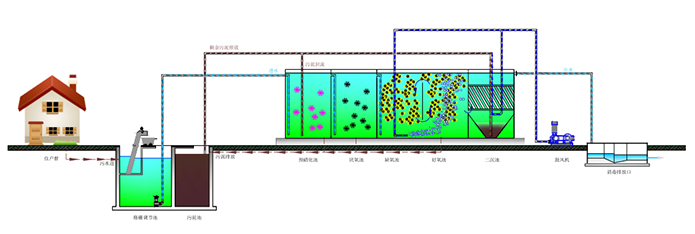 E-co Box臥式一體化污水處理裝置工藝流程圖