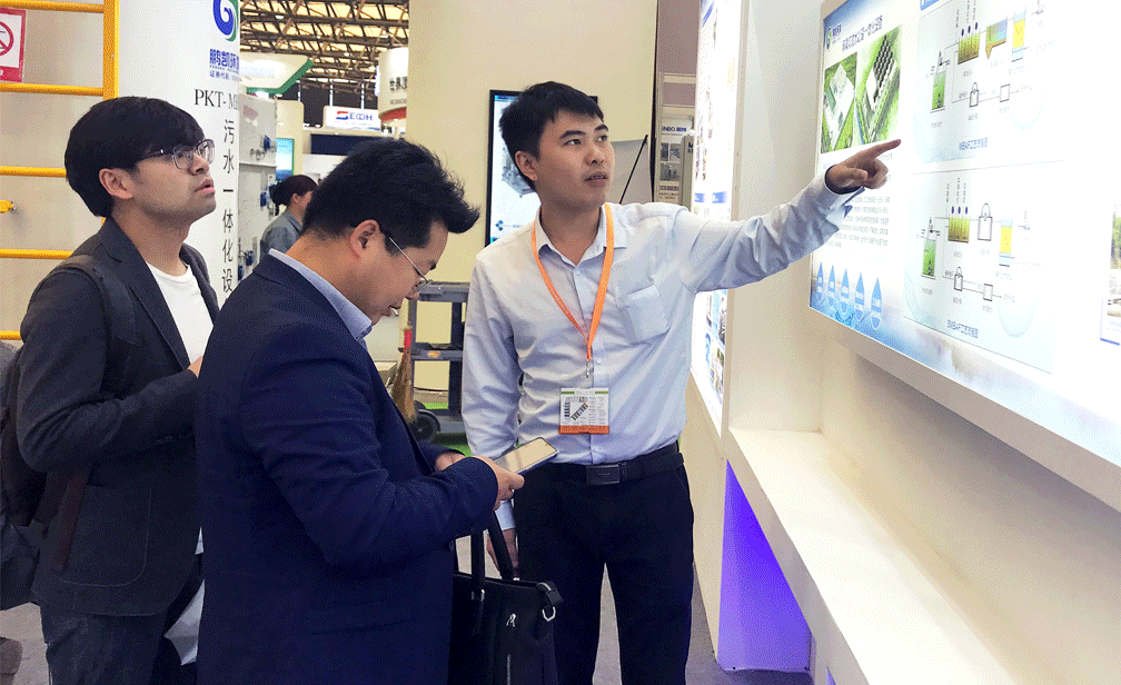鵬凱環境在黑臭河道應急處理、農村污水處理、垃圾滲濾液處理、污水廠擴容提標改造工程、水生態修復治理等業務領域先進技術和優質工程案例,受到環保行業客戶及國際環保行業人士的廣泛關注和認可,吸引了大批嘉賓前來展臺咨詢與交流。