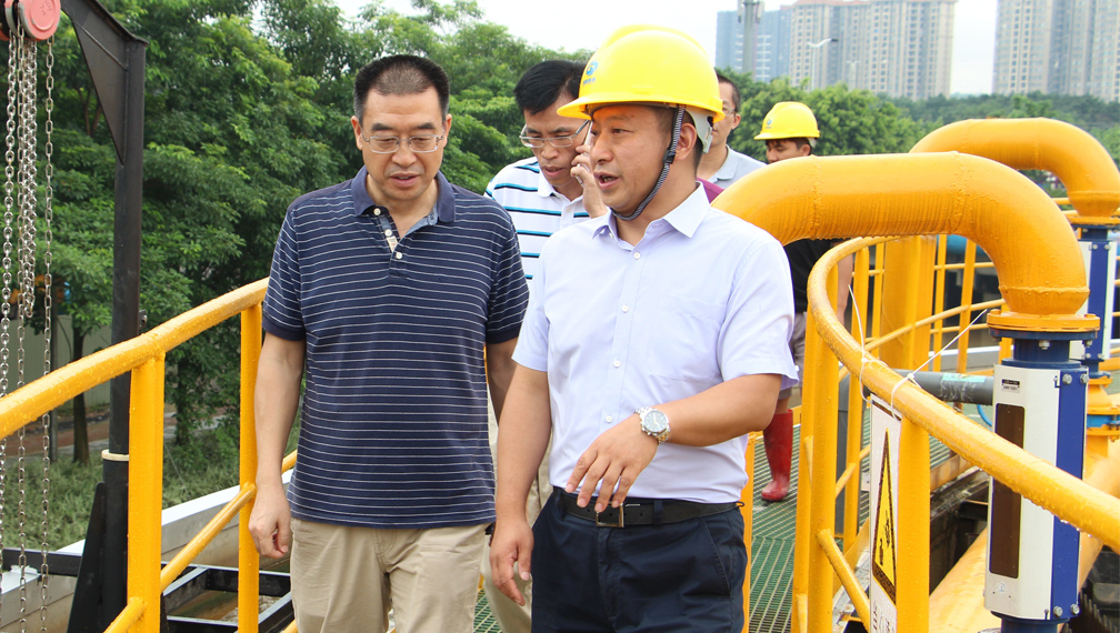 6月26日上午,廣州市黃埔區人大常委會副主任牛穗生、區人大常委會城建環資工委陳廷遠、區人大調研員宋小平等領導一行蒞臨鵬凱環境位于廣州市黃埔區沉水園一體化污水處理項目現場,實地調研項目建設和運行情況。黃埔區區河長辦、區水務局主要負責人陪同考察。