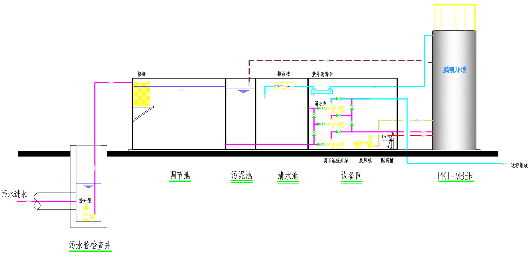 鵬凱環(huán)境立式低能耗內(nèi)循環(huán)一體化污水處理設備可有效地去除水中COD、BOD5、氨氮等有機污染物及SS等無機污染物,具有水質(zhì)高效穩(wěn)定、抗沖擊負荷能力強、占地面積小、運行成本低、運維管理操作簡便等優(yōu)點。本項目污水處理后出水水質(zhì)達到《城鎮(zhèn)污水處理廠污染物排放標準》(GB18918-2002)一級A標準。