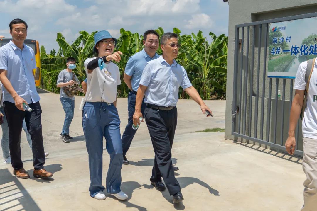 2020年7月30日上午,廣東省工程勘察設計大師李駿飛等一行領導蒞臨鵬凱環境南沙區大崗鎮農村生活污水治理查漏補缺工程——高沙村4#站點、新沙村2#站點分散式污水一體化處理項目現場進行考察調研指導工作。