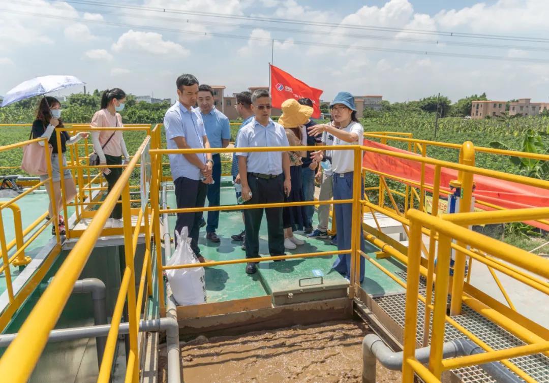 考察組一行領導通過項目現場的實地考察、交流詢問,充分了解了該項目的工藝、進出水水質、設備運行等狀況以及日常運維管理情況等,廣東省工程勘察設計大師李駿飛就農村生活污水治理查漏補缺事宜與我司人員進行了深入的探討,并對下一步如何做好運維管理工作提出了建設性的意見。