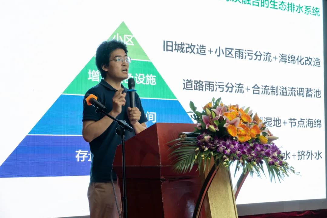 中規院(北京)規劃設計公司水環境治理所所長王晨就《以藍綠灰融合的方式構建城市排水系統的韌性網絡》作主旨演講,詳細介紹了構建藍綠灰融合——合流制溢流污染控制系統的總體思路。