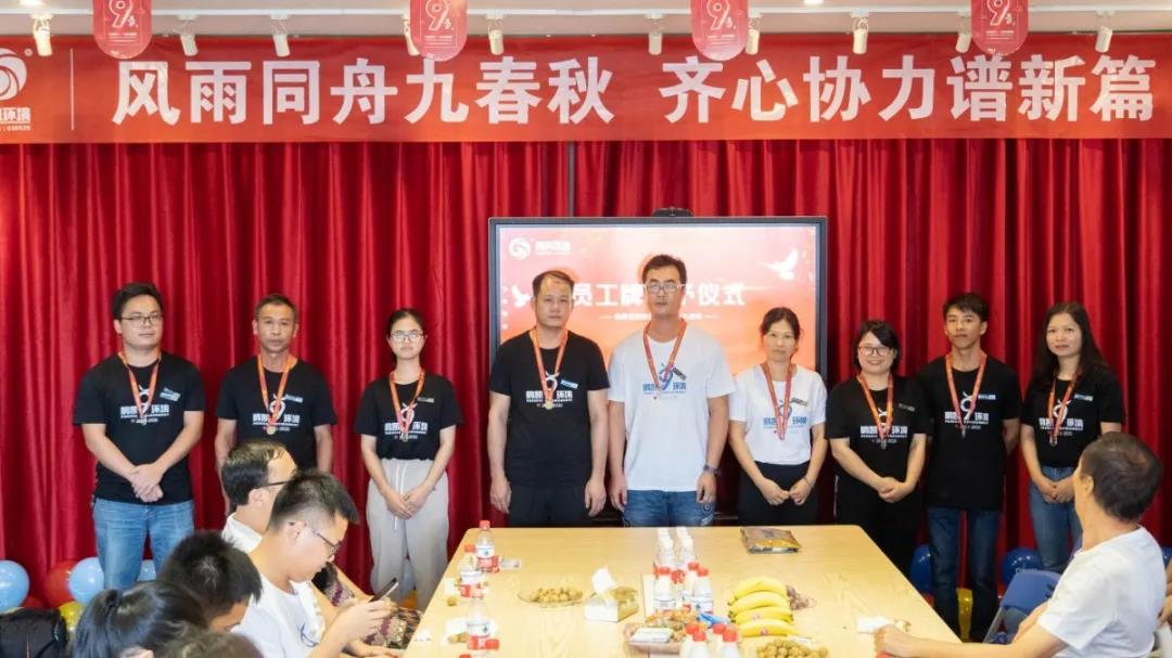 感恩有你,同心同行。鵬凱環境九周年慶舉行員工司齡授牌儀式。九載的發展歷程,鵬凱人從稚嫩懵懂到成熟干練,從風華正茂到兩鬢染霜,將自己最美好的芳華奉獻給環保事業,在自身成長的同時,他們也見證了鵬凱環境的每一步成長,鵬凱環境也將他們的美好蛻變用心銘記!