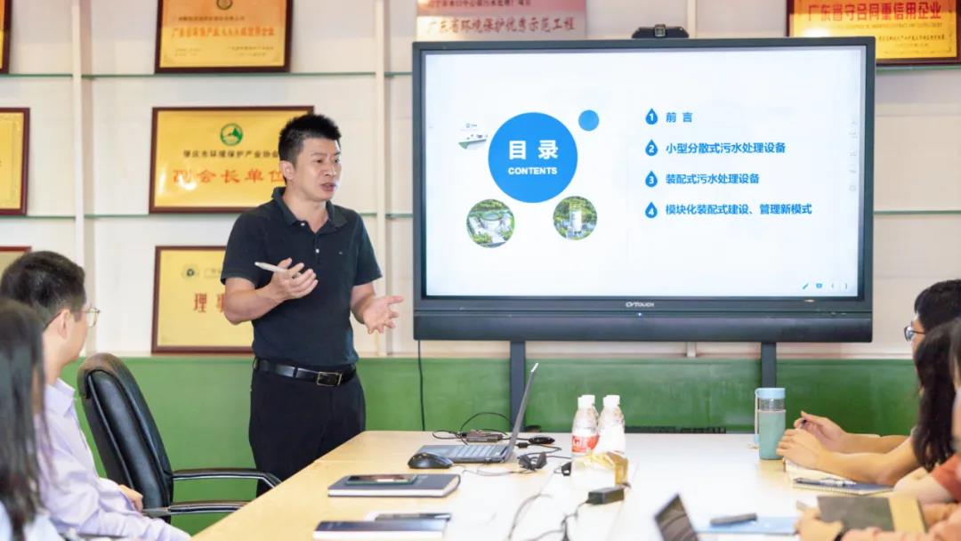 研討會上,鵬凱環境王國彬董事長向項目組學生重點講述鵬凱圓-模塊化(裝配式)污水處理系統的創新技術反應機理與關鍵路線,并以沉水園項目為例,多層面、多角度地展示了該工藝在技術科研方面的新突破及其在實際項目中的實施效果、綜合優勢。