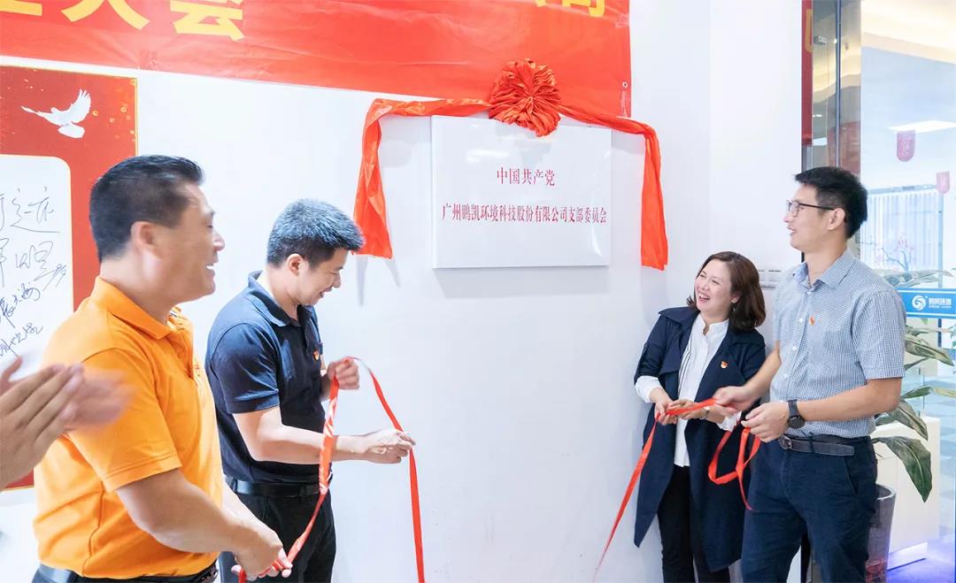 陳瑞梅同志、陳俊鋒同志、周世武同志、王國彬同志共同為鵬凱環(huán)境黨支部揭牌,開啟鵬凱環(huán)境黨建啟航發(fā)展的新篇章。