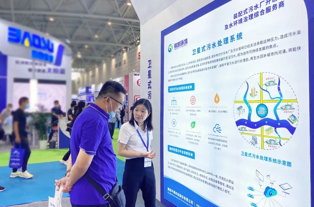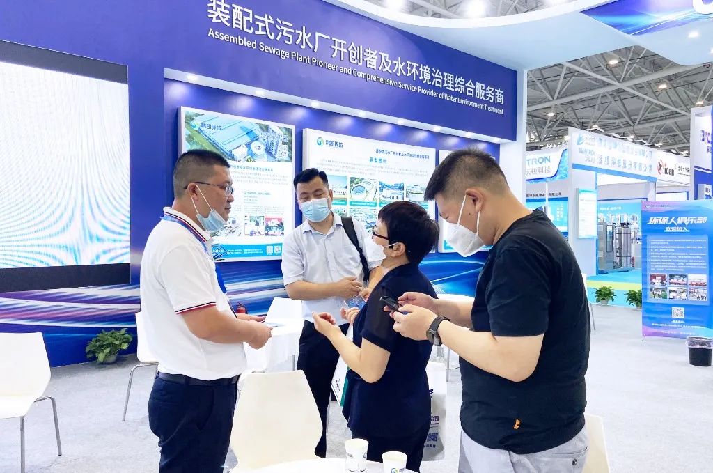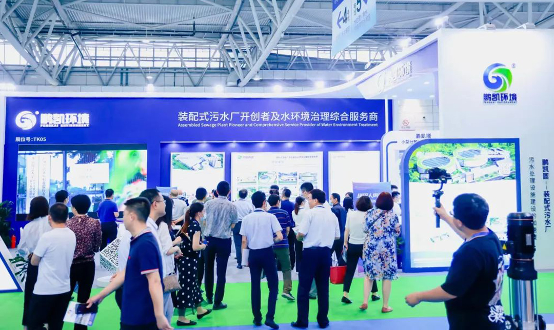 鵬凱環境作為裝配式污水廠開創者及水環境治理綜合服務商,攜全系產品矩陣精彩亮相,一展水環境治理領域創新科技和前沿發展趨勢。鵬凱圓-低碳高效裝配式污水廠、鵬凱塔-小型分散式污水處理設備、SBAF-高效模塊式污水處理系統等治水“黑科技”吸引了諸多與會者前來參觀交流,創新的裝配式污水廠概念、先進高效的技術工藝、節能降耗的減碳路徑得到了政府領導、專家學者、業界同仁的高度贊賞與肯定。