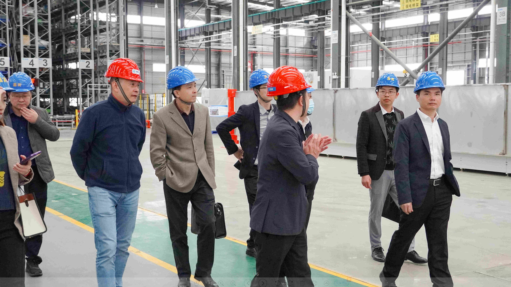 考察組領導一行實地考察了生產基地的自動化生產線、自動化立體倉儲系統,深入了解鵬凱環境生產制造能力及自動化、智能化水平,并就裝配式污水處理系統技術亮點和技術落地應用情況等展開交流探討。