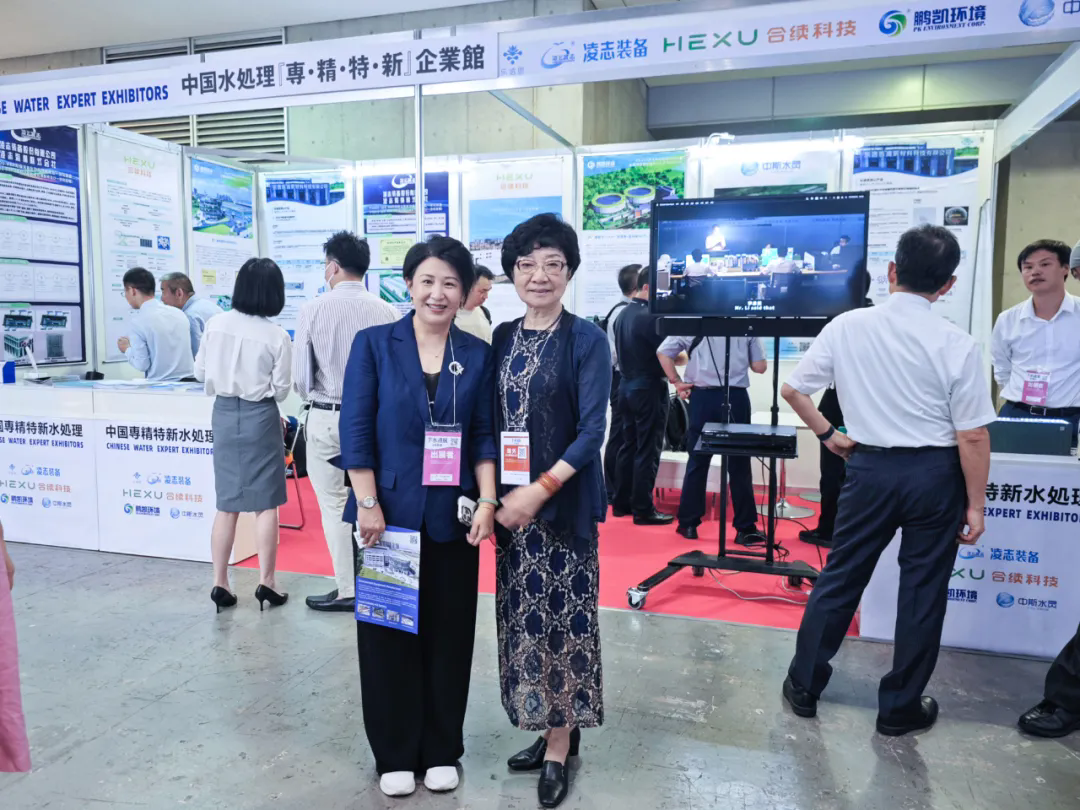 北京市市政工程設(shè)計(jì)研究總院有限公司原副總工程師杭世珺(右)親臨中國(guó)水處理專(zhuān)精特新企業(yè)館參觀指導(dǎo)